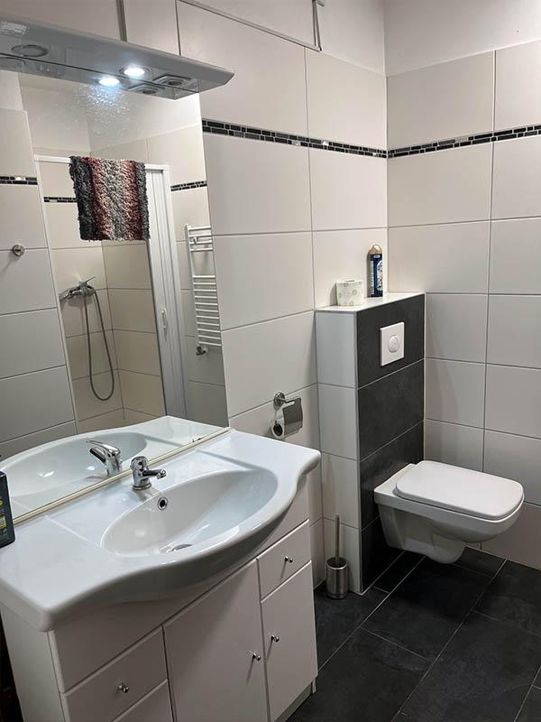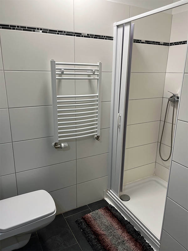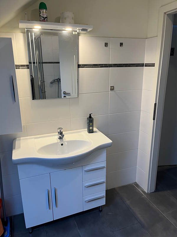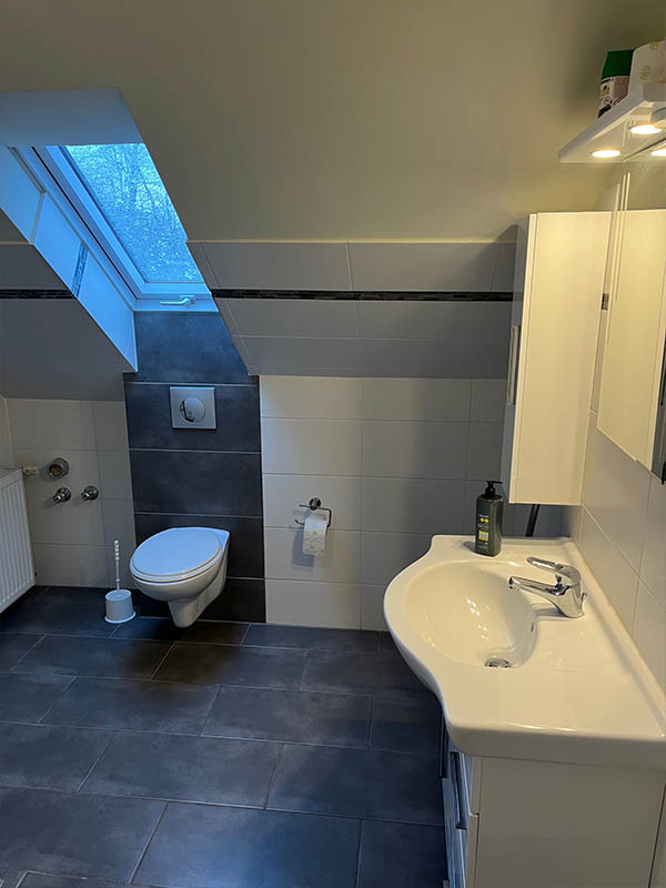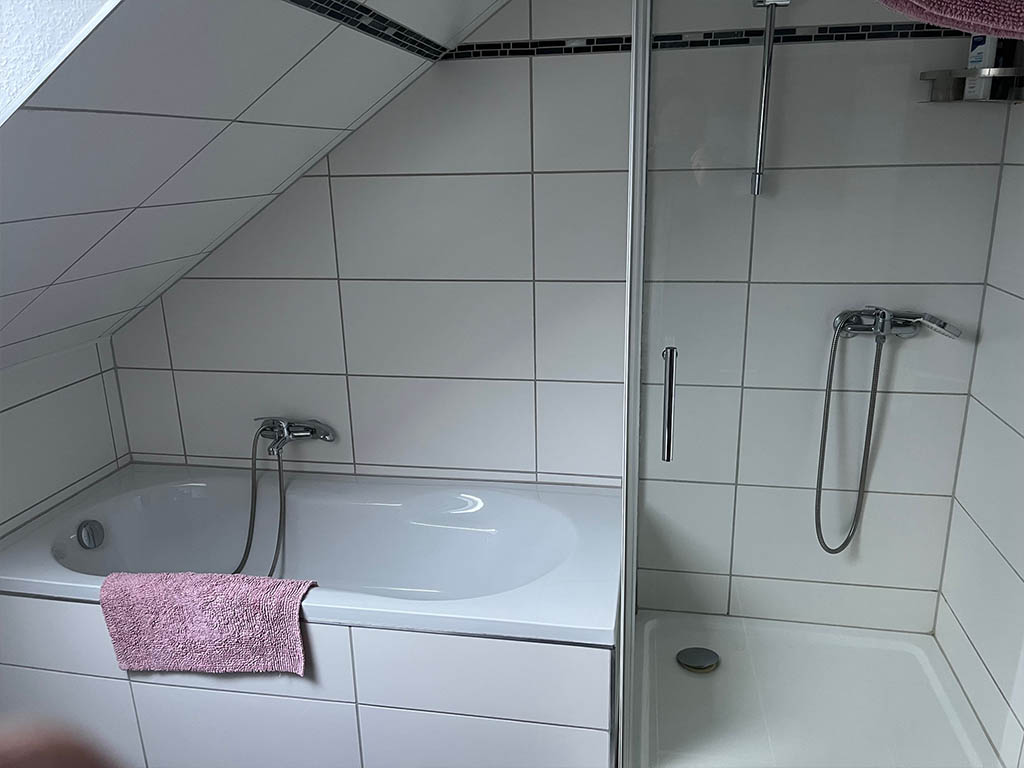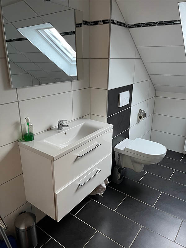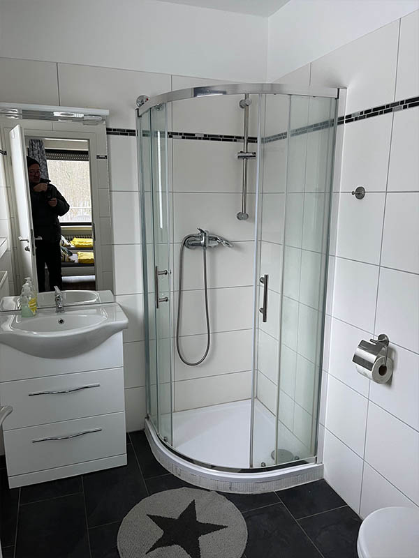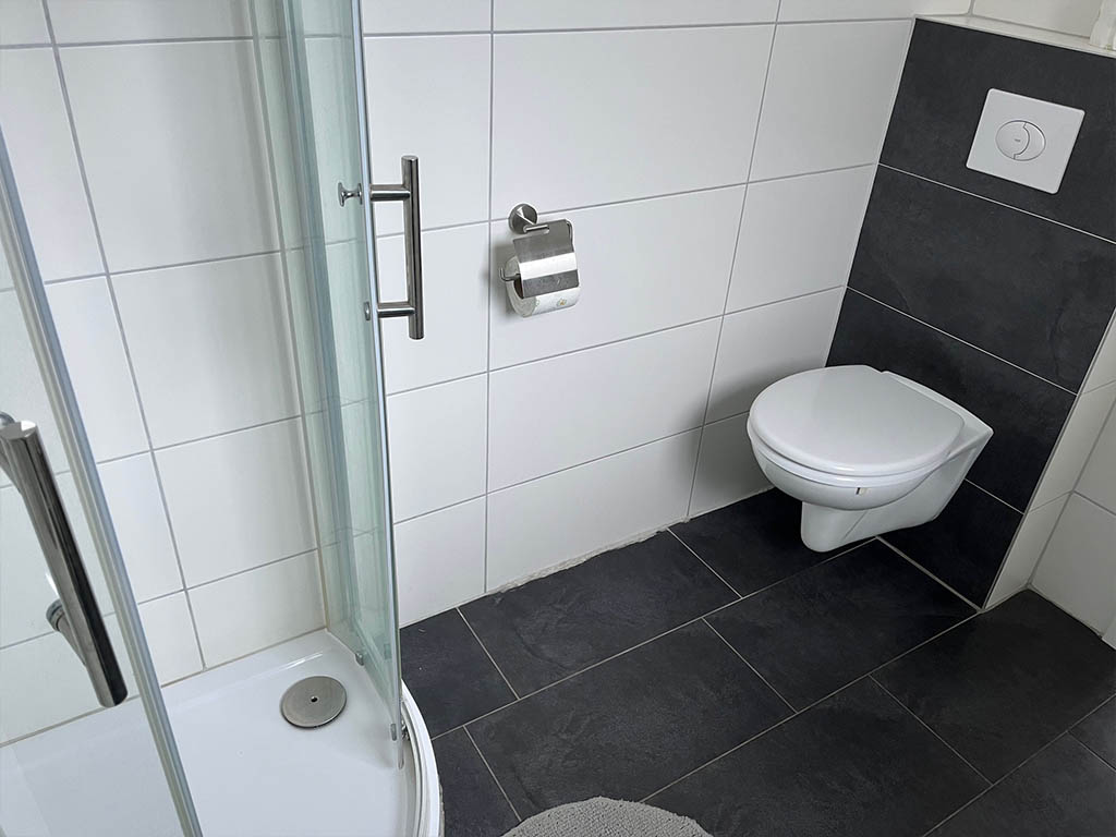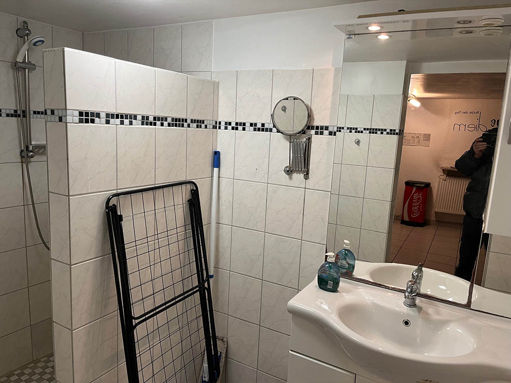 Bei den Zimmern 1, 2, 4 und 5 werden Bad und Küche gemeinschaftlich genutzt. Das funktioniert gut, weil alles gepflegt ist und regelmäßig sauber gemacht wird.