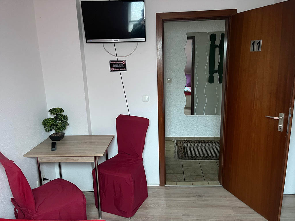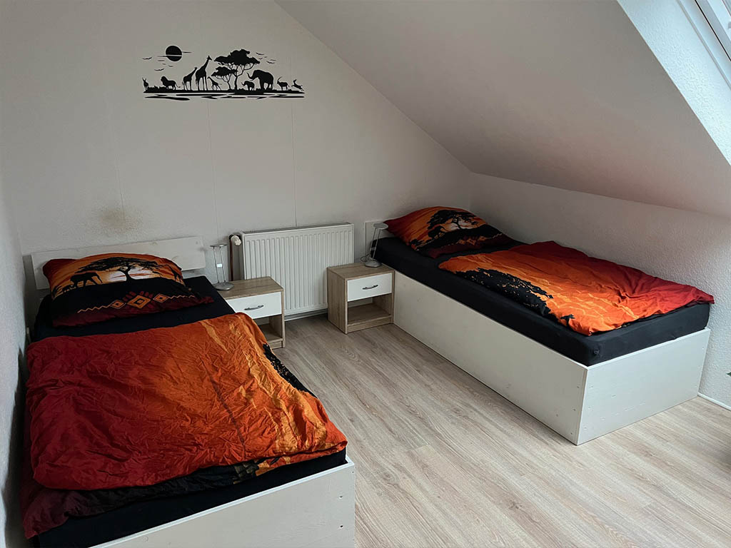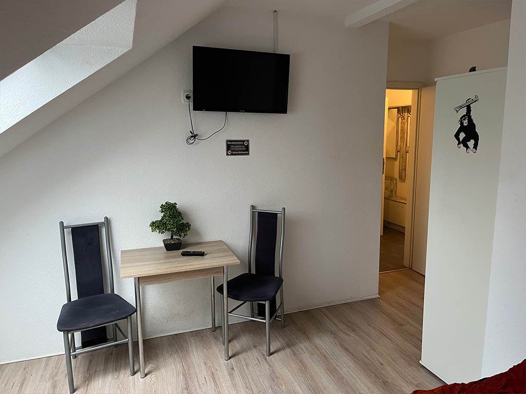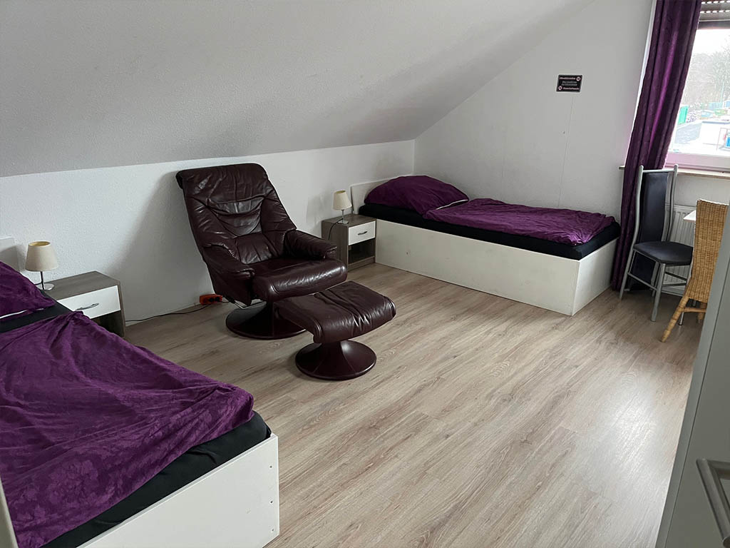Zimmer 2 ist für bis zu 3 Personen geeignet. Bad und Küche werden gemeinsam genutzt. Ideal, wenn man mit Kollegen oder als kleines Team unterwegs ist.