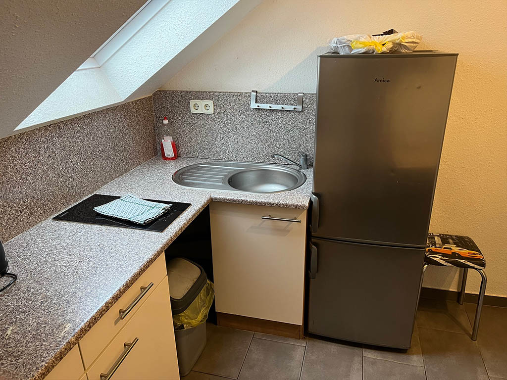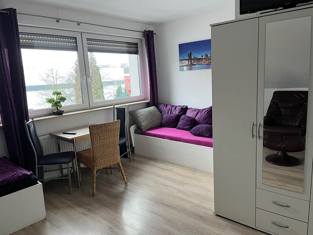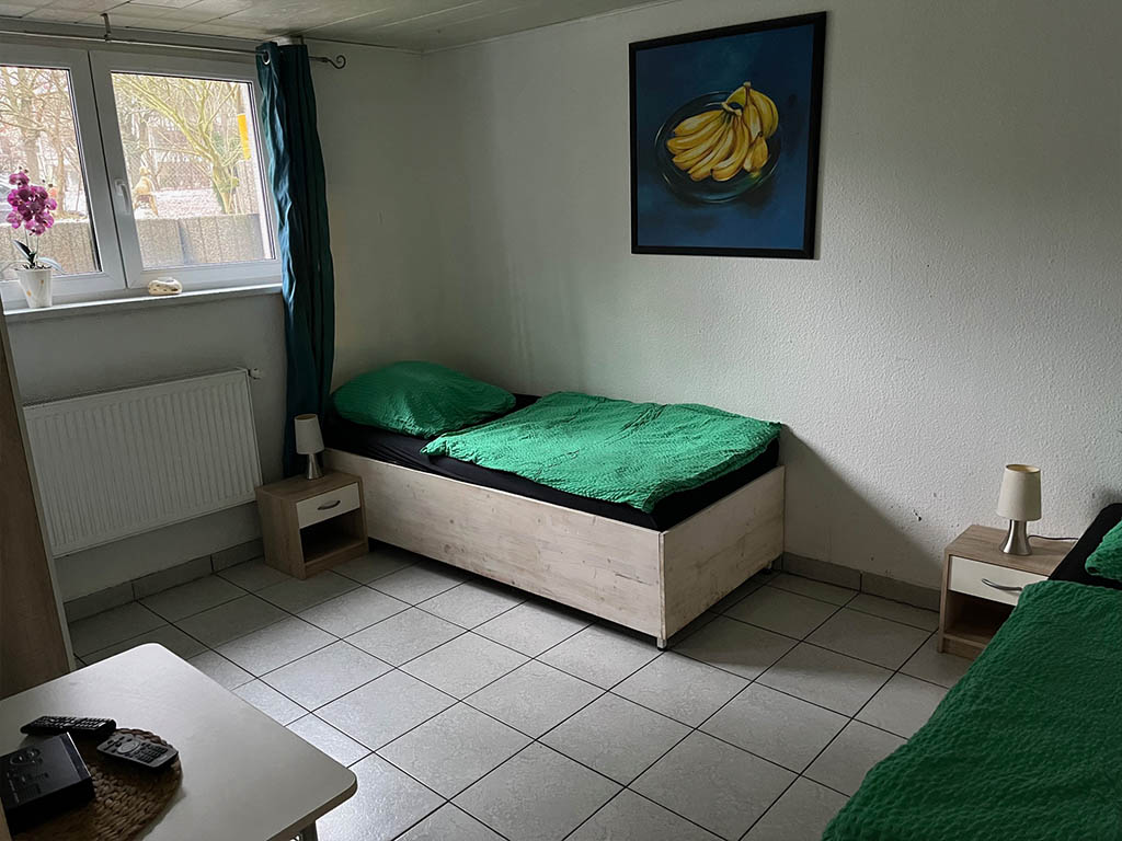Zimmer 1 eignet sich für 1 bis 2 Personen. Bad und Küche werden gemeinsam genutzt. Bettwäsche ist inklusive und wird wöchentlich gewechselt.